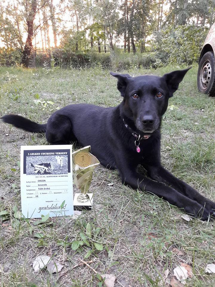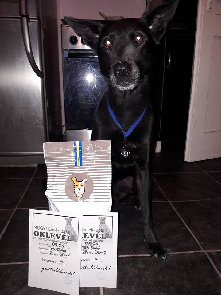 Anno kicsi koromban szerettem volna egy fehér kis szőrgombócot. Ki is találtam a nevét Orion. Az évek alatt a név maradt csak a fajta változott. Mikor összekerültem az akkori párommal gondoltam, ha már kertes ház, akkor jöhet egy Orion nevű kutyus. Abban az időben bullterriert szerettem volna. Miután neki is volt kutyája Csövi ezért olyat kellett választani akit Csövi is elfogad. Ezért nehéz szívvel, de le kellett mondanom a bullról hisz hiába vesszük meg 200ezerért lehet Csövinek nem tetszik és akkor hogyan tovább. Ezek tudatában elmentünk a Budaörsi menhelyre. Nagyon nagyon sok kutyát mutattunk neki, de egyik se tetszett. Végül voltak baba kutyusok, abból egyet kihoztunk és tádám, tetszett neki. Így haza is vittük az Orion nevű fekete baba kutyát. Nem sokáig laktunk ott. Az utcára kerülésünk után a barátaink befogadtak egy időre. Ott tapasztaltam meg hogy nagyon figyel ránk és utánoz. Ez abban nyilvánult meg hogy szüreteltük a szőlőt, ő is leszedte. Mikor szedtük a paradicsomot, ő is szedte. Aztán azt is megfigyeltem, hogy a beton lépcsőhöz fekszik és rágta. De nem csak azt, hanem a járda szélét, a kavicsokat is felszedte. Hála ezt szép lassan kinőtte. Egy kis idő után onnan is tovább kellett állnunk, így visszamentünk Újpestre. Hosszú ideig az autóban éltünk. Drága Barátnőm-isten nyugosztalja- Ica, sok mindenben segített. Orion Kevinnel evett esténként, és játszottak is. Reggel mikor a nap kelt már Orion is fent volt az autóban és jelezte pisi, kaki. Ennek hatására, hogy az autóban éltünk sajnos sokáig elhányta magát ha beszálltunk. Egy idő után barátaink segítségével találtunk albérletet és munkát. Így beköltözhettünk. Nagyon jó buli volt, egy kis kertes ház alsó lakása. Persze a kertbe nem mehetett, de hát milyen Anya lennék, ha éjszaka nem engedtem volna be. Sokszor veszekedtünk ezen mert nulla volt a behívása és képes volt órákig rohangálni. A reggeli és esti séták alkalmával mikor póráz nélkül volt szerette kinyitni a szomszéd kaput és bemenni a haver kutyához játszani. Szegény szomszéd mindig mondta, hogy csak a kis kerítés mögötti fűre nem mehet, persze ő megtette és vigyorogva rohangált bent. Sajnos sokat nem értettem abban az időben a kutyákhoz és ennek köszönhetően nem is volt rendesen lefárasztva. Jöttek a rongálások. Első körben kaptunk egy ágyat, hogy ne a földön aludjunk. Mire haza jöttem melóból a rugók álltak ki, mint a filmekben. Aztán a konyhában linóleum volt vagy 6 réteg, az összest feltépte. Aztán ami létezett ajtófélfa azt mind leszedte. Az utolsó amit tönkre tett a bejárati ajtó melletti fal, amihez vágható téglát kellett venni és visszapótolni. Abban az időben még úgy gondoltam, hogy lesz ez jobb is, persze minden az én hibám és utál a kutyám, hogy sokat dolgozok, biztos haragszik. Utólag tudom már, hogy ez nem így van/volt. Akkoriban volt egy szerelme Frici. Vele játszottak sokat az utcában. Sajnos az egyik nap észrevettek egy másik kutyust az út túloldalán. Már mikor elindult tudtam, hogy ez az a futása amikor már nem tudom behívni és kifutott az úttestre. Sajnos vállal neki is futott egy 50nel közlekedő autónak. Azonnal orvos. Persze nem találtak semmit, de a belső vérzést nem tudták megállapítani így figyelnem kellett az ínyét. Hála az égnek nem lett semmi baja. Volt élete során pár szerelme. Nem sok, de akadt. Ilyen volt Frici, Lobo, a nagy barna kutyus, akinek mai napig nem tudom a nevét, Max….. Volt, hogy tiszta kiütés lett. Jártunk minden féle dokinál és az utolsó volt aki kiderítette, hogy csak a bűzmirigyét kell kinyomni, így hála ezt is megúsztuk ennyivel. Négy éves korára annyira vérzékeny volt már hogy a menzeszt nehezen viselte ezért nem volt más lehetőség ivartalanítani kellett. Ezt is nehezen viselte. Négyszer mentünk vissza a dokihoz hogy nézze meg.