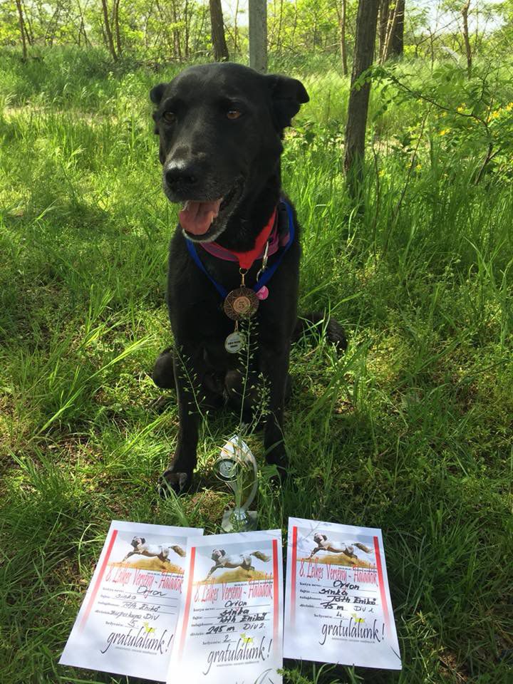 Közben jártunk ide-oda nyaralgatni is. Éltük az életünket. Elkezdtünk a Cerbibe járni a közös problémánk miatt, egy ideig fejlődtünk aztán megrekedtünk egy szinten. Kizárás alatt a falat is kibontotta a panelban ahova átköltöztünk. Közben el is költöztünk. Az új helyen kerestünk egy sulit. Ott folytattuk a szocit. Ennek hála visszanyertem a tekintélyem és mondhatom egyre jobb a kapcsolatunk. Ez idő alatt megcsinálta az alap ill. középfokot majdnem 100%ra. Nyert egy szépség versenyt Fekete kategóriában. Két helyezést is elért Lelkes versenyen és licences kutyus lett. Nyáron jártunk frizbi versenyekre. Sajnos a sérülése miatt az utolsón nem vehetett részt, de azóta is gyakorlunk hisz lesz jövőre is. Hét évesen megélte hogy papillomája lett. Aggasztó volt, hogy nem múlik el, de egyszer csak pukk, kipukkant neki. Azóta a Mantrailing a kedvenc sport, már szagról indul a drágám és a szeminárium keretein belül jelezték hogy nagyon jó Kereső Kutya válhatna belőle. Idén rengeteg versenyt megnyert vagy dobogóra került. Büszke lehetek a kilenc éves picsuszomra.Lassan 12 évesen már nem sok mindent sportolt. A túra és az agárpálya az ami megmaradt neki.
